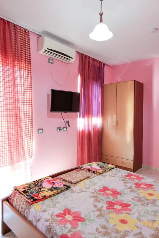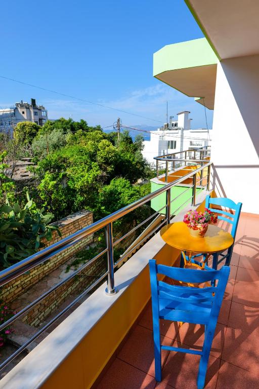 The balcony had a very nice view on Saranda a you can see the sunset from it. The room was very big and bed comfortable. Parking was available inside the property which is very convenient.The host is nice.